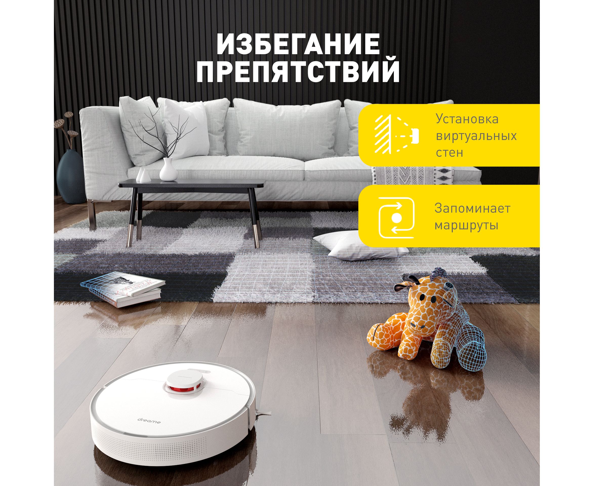 Датчик столкновения, Датчики движения вдоль стен, Датчик перепадов высоты, Обнаружение коврового покрытия, Лидар, Стереокамера