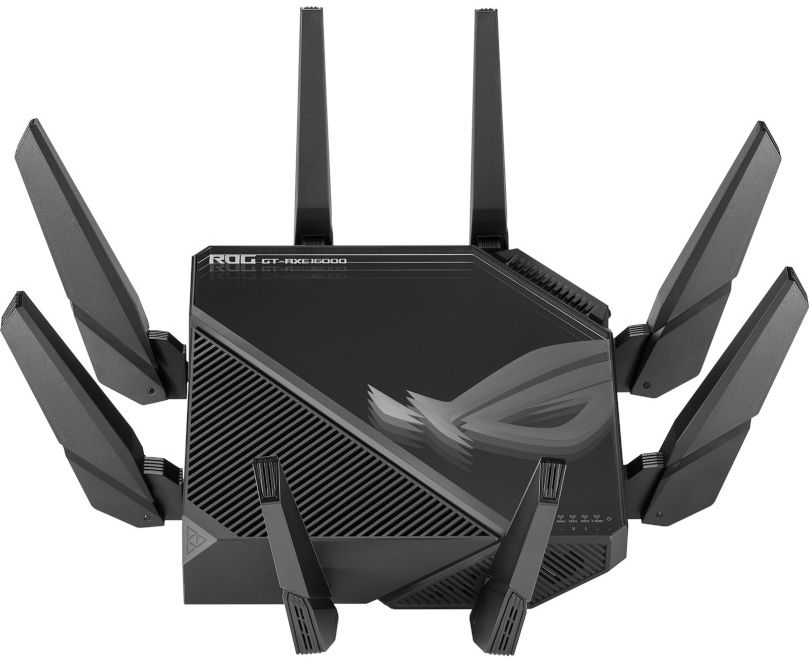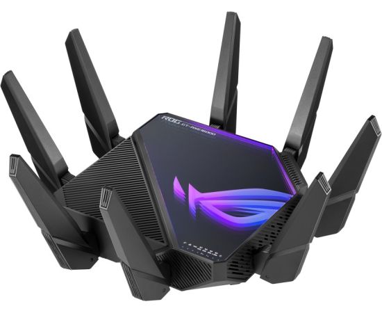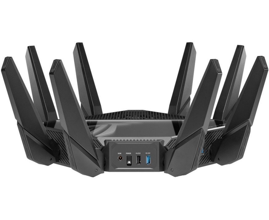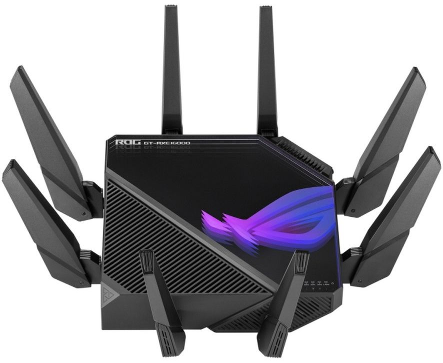 Первый в мире четырехдиапазонный маршрутизатор Wi-Fi 6E: общая скорость передачи данных по сети Wi-Fi достигает 16000 Мбит/с. Поддержка частотного диапазона 6 ГГц: выше скорость, ниже латентность, менее загруженный эфир. Технология ASUS RangeBoost Plus: расширенный охват беспроводной сети.