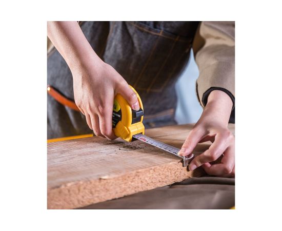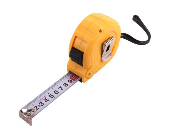 Рулетка предназначена для бытового и полупрофессионального использования. Рулетка обладает прочным корпусом из ABS-пластика, клипсой для крепления на ремне и ремешком для ношения на запястье. Инструмент прослужит долго за счёт стальной ленты с белой, матовой краской, устойчивой к истиранию. Рулетка оснащена металлическим крючком с автоматической коррекцией нулевой точки и металлической возвратной пружиной для быстрого свёртывания ленты. Длина и ширина ленты 10м х25 мм