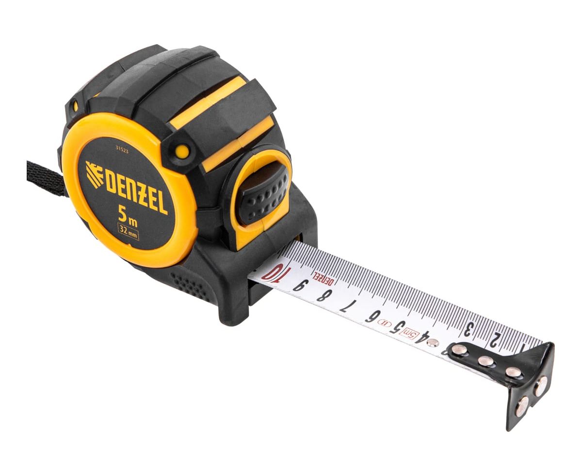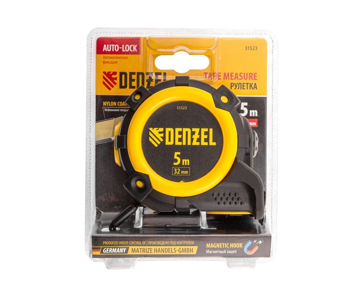 Рулетка Denzel 31523 автоматическая фиксация 5м х 32мм нейлоновое покрытие/магнитный зацеп/двухстор. разметка