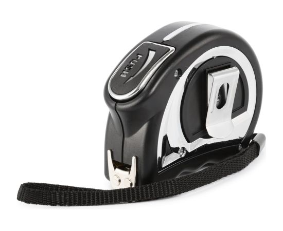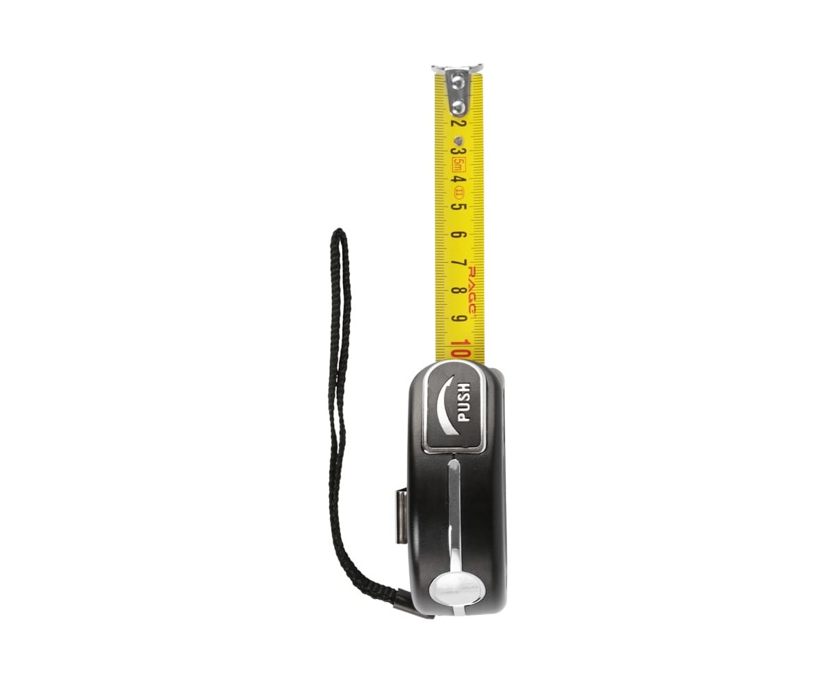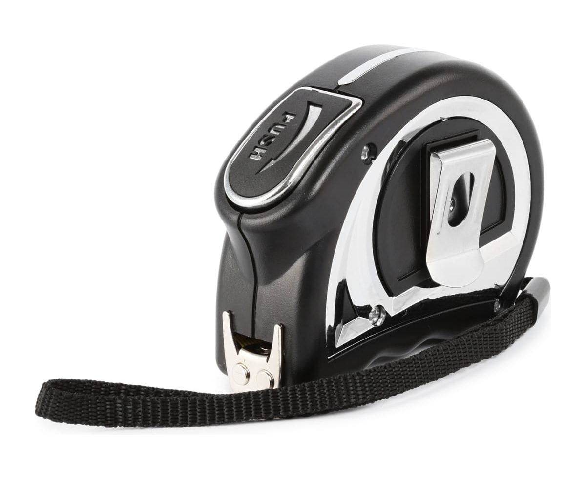 Инструмент оснащен удобным механизмом фиксации – автостоп. Полотно удерживается автоматически, для сматывания ленты достаточно нажать на кнопку.