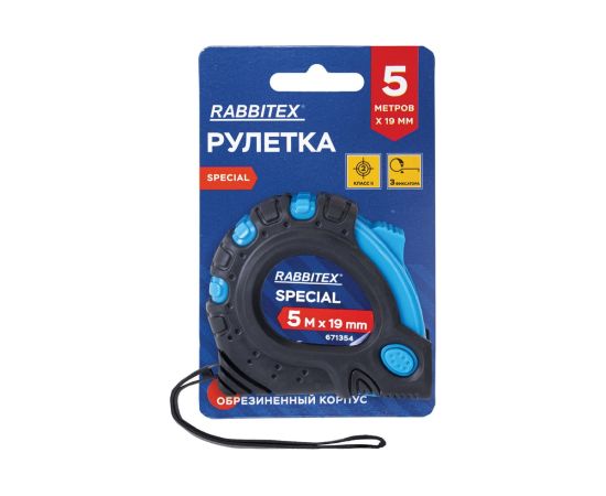 Рулетка измерительная RABBITEX 671354 Special 5м*19мм, обрезиненный корпус, 3 фиксатора