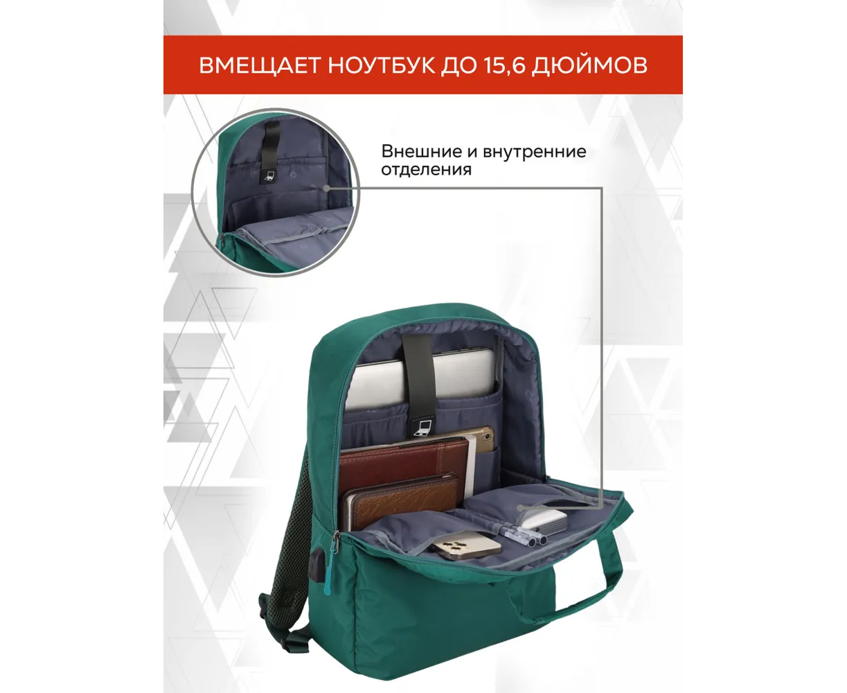• Переднее отделение на молнии для хранения различных аксессуаров: ключи, наушники, мышь, смартфон, зарядные устройства и иные устройства