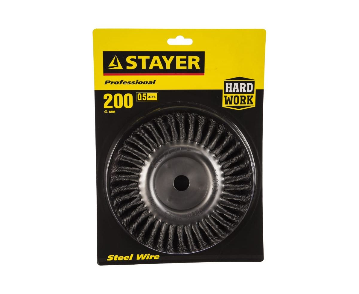 Щетка дисковая для УШМ STAYER Master 35120-200, плетенные пучки проволоки 0,5мм, 200мм/22мм