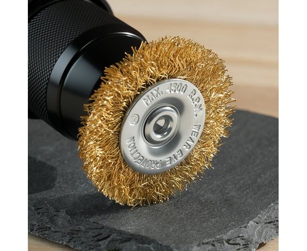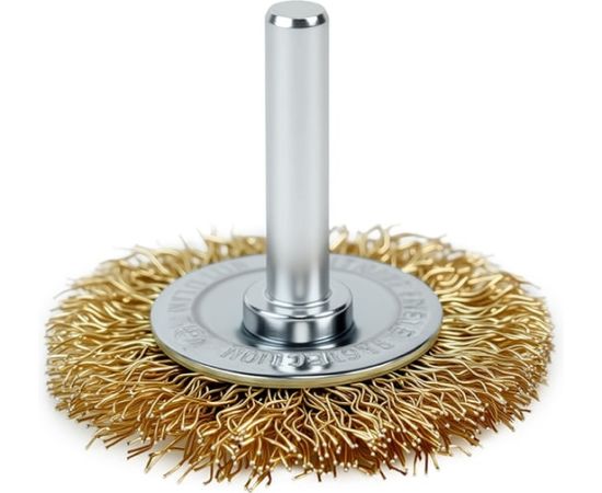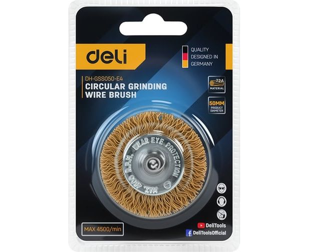 Щетка дисковая прямая для дрели Deli DH-GSS050-E4 50мм, латунированная, толщина проволоки 0,3мм, хвостовик 6мм, макс 4500об/мин
