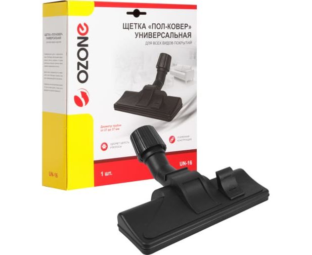 Универсальная щетка OZONE UN-16 подходит для любого пылесоса. Щетка имеет переключатель с щетины на ролики, поэтому с ее помощью можно осуществлять чистку как ковров и ковровых покрытий, так и гладкого пола.