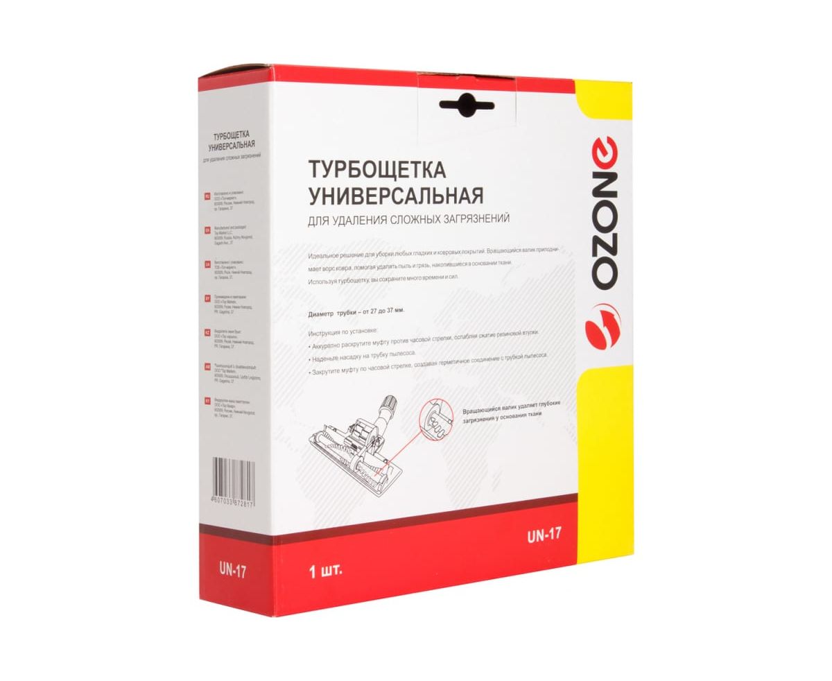 Щетка OZONE UN-17 совместима с любым пылесосом. Внутри встроена вращающаяся круглая щетка, которая идеально подходит для чистки полов.
