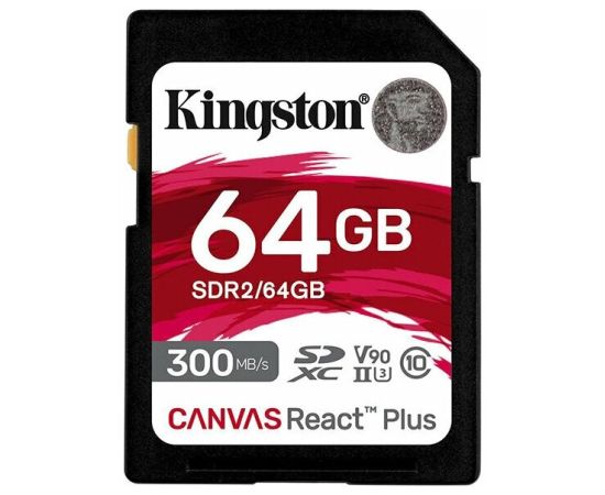 SDXC 64GB Kingston Class 10 UHS-II U3 V90 React Plus (300 Mb/s)