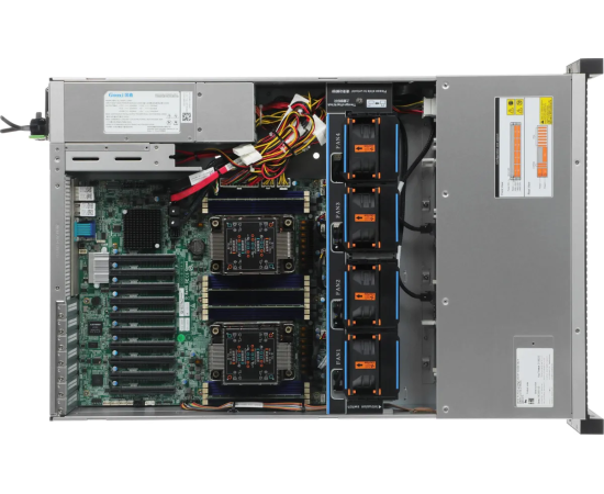 Корзина на 8 дисков SAS/SATA 2.5/3.5 с пассивным backplane. Для поддержки дисков SAS требуется установка RAID-контроллера. Тыловая корзина на 2 системных диска SATA 2.5. Рельсы в комплекте.
