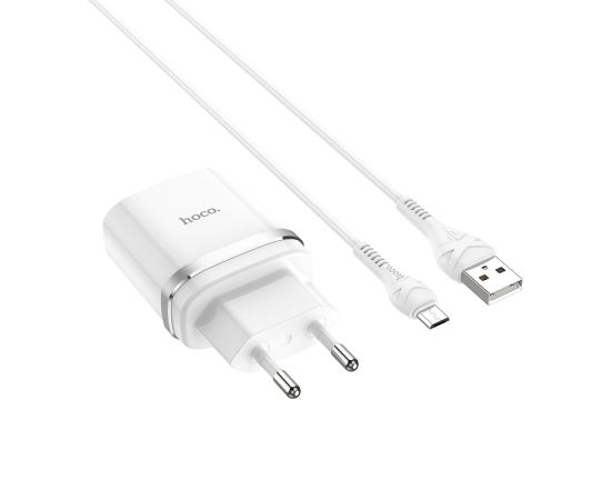 Сетевое зарядное устройство 1USB 3A QC3.0 быстрая зарядка с дата-кабелем micro USB Hoco C12Q 1м (White)