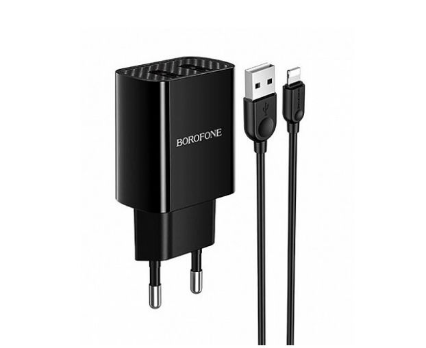 Сетевое зарядное устройство 2USB 2.1A в комплекте с кабелем Apple 8-pin Borofone BA53A 1м (Black)