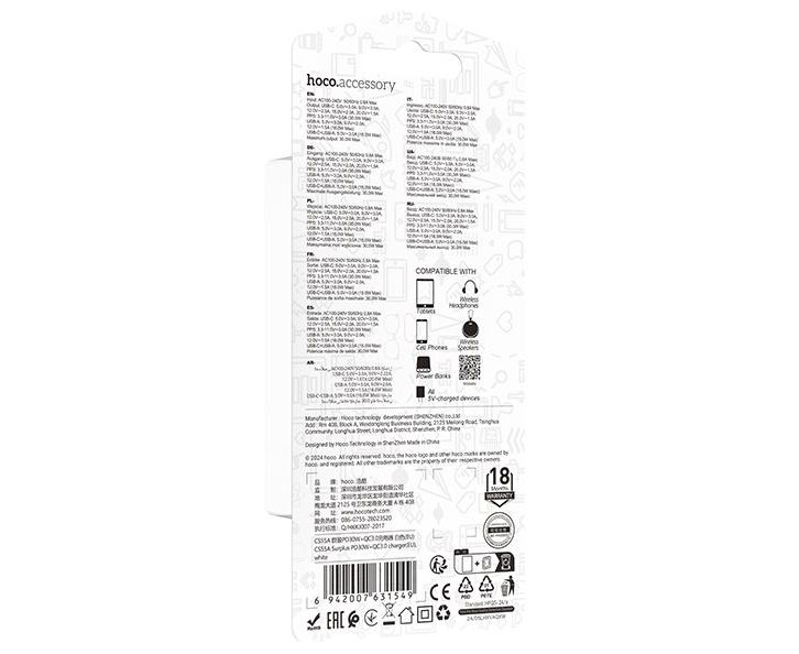HOCO CS55A идеально подходит для зарядки смартфонов, планшетов и других электронных устройств, поддерживающих быструю зарядку. Благодаря своим компактным размерам и удобной конструкции, оно станет незаменимым помощником в повседневной жизни.