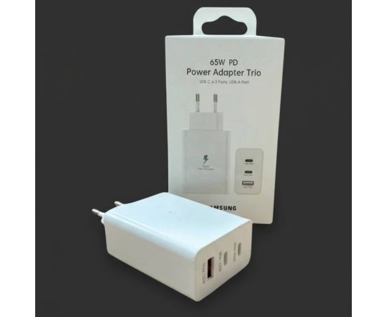 Сетевое Зарядное Устройство Samsung 65W PD adapter trio USB-Cx2 Ports, USB-A port black Белый ( EP-T6530) Original