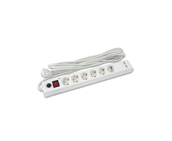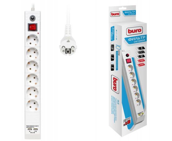 Сетевой фильтр Buro BU-SP5_USB_2A-W 5м (6 розеток) белый