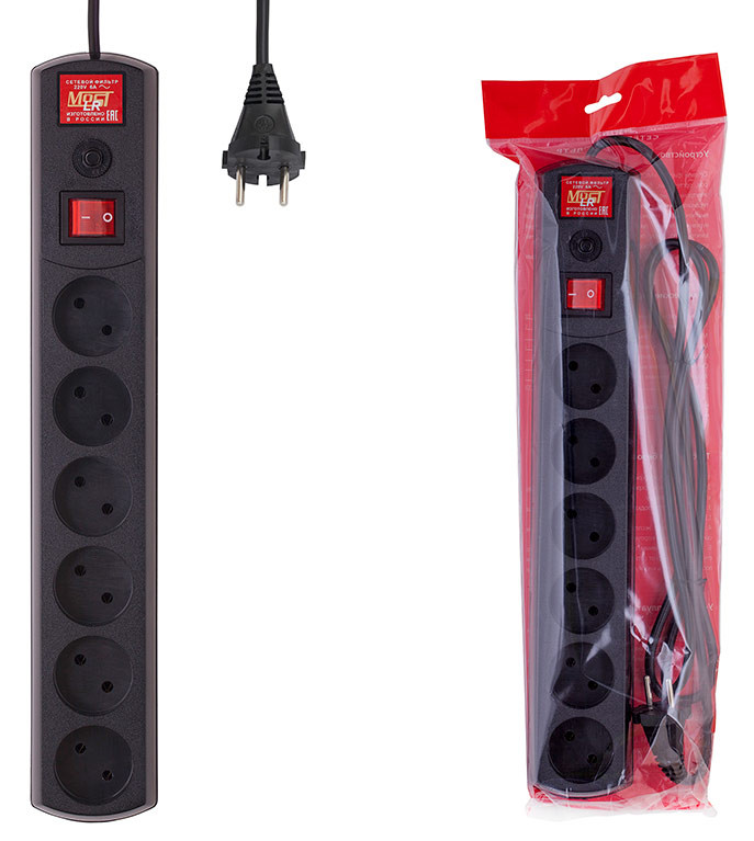 Сетевой фильтр Most LR 1.7м (6 розеток) черный (коробка)