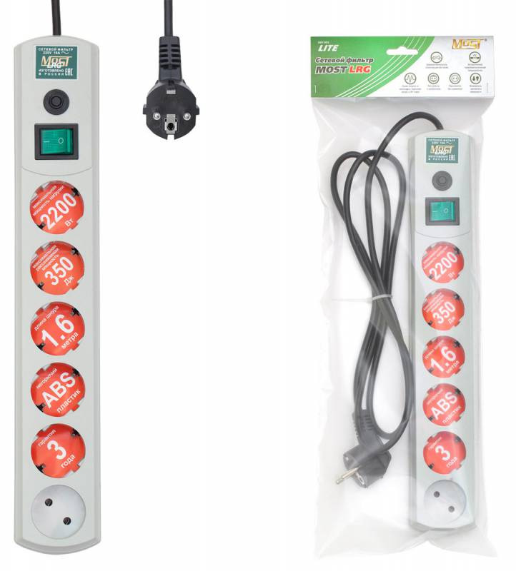 Сетевой фильтр Most LRG 3м (6 розеток) белый (пакет ПЭ)