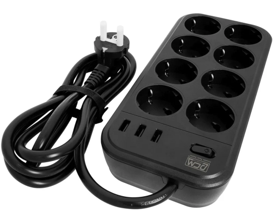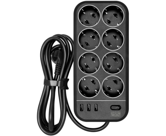 Сетевой фильтр Powercom SP-08 USB03AB 3,0m 3.0м (8 розеток) черный)