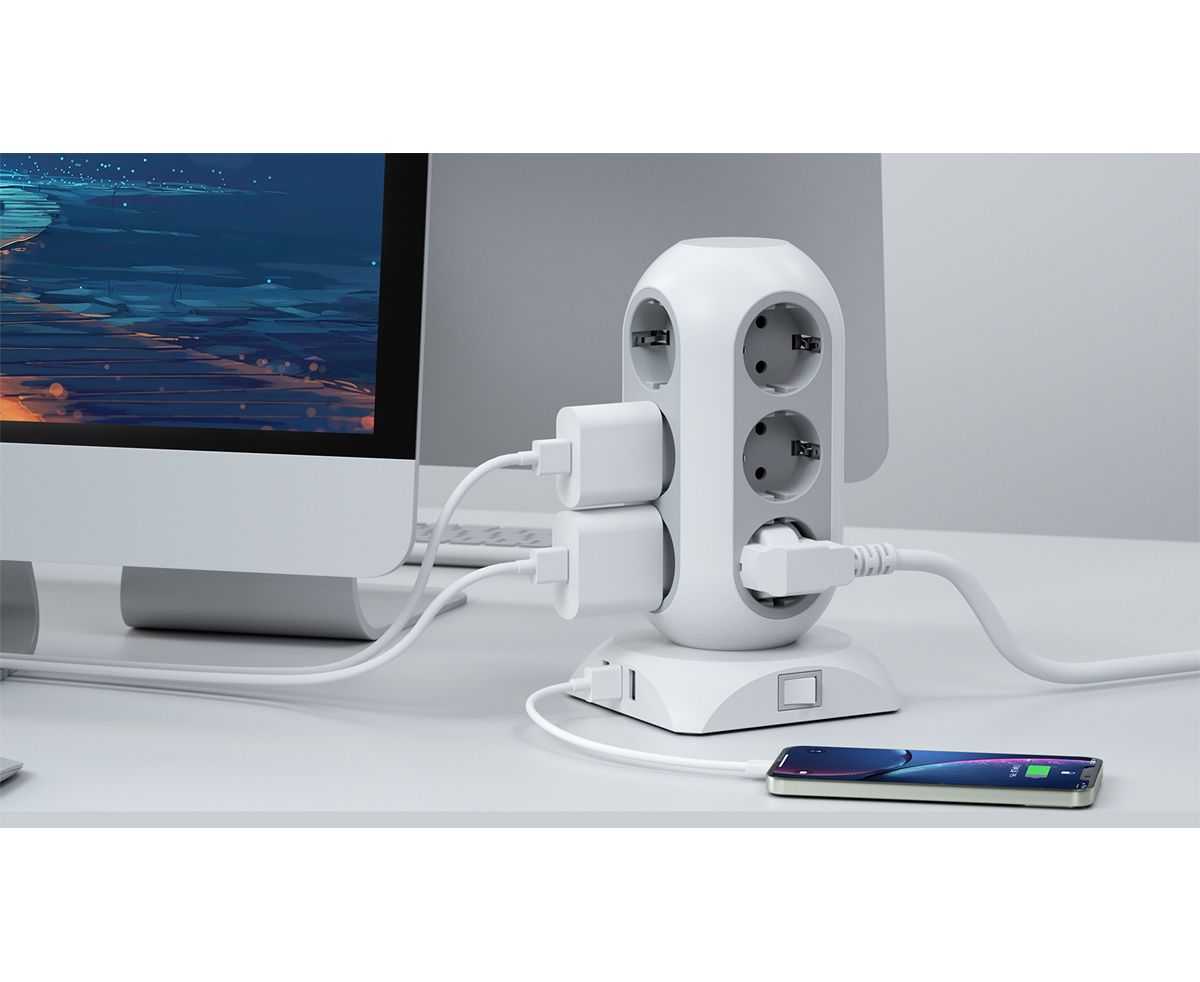 Сетевой фильтр TESSAN TPS02-DE, 2м, серый