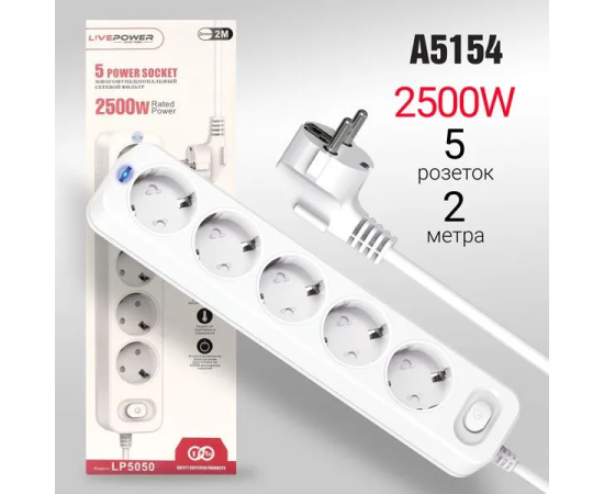 Сетевой фильтр-удлинитель Live-Power LP5050 5 розеток 2000mm White