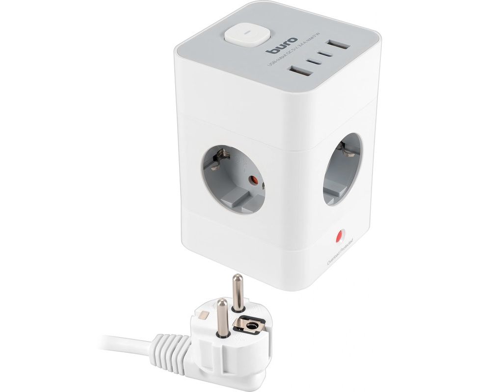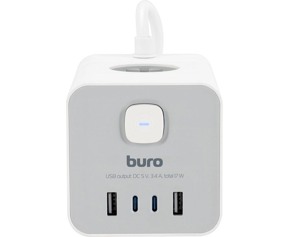 Сетевой удлинитель Buro BU-PTE4.1UC-W, 1.5м, белый