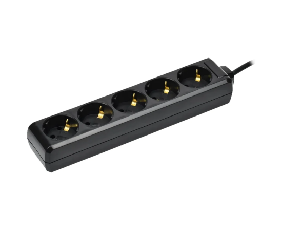 Сетевой удлинитель IEK WYP10-10-05-03-Z-K02-G У05 3м (5 розеток) черный (пакет ПЭ)