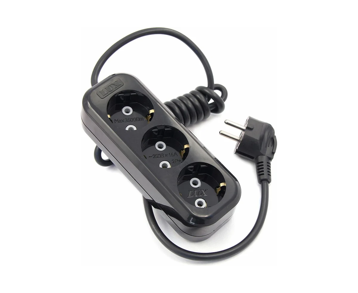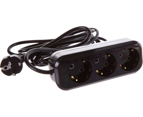 Сетевой удлинитель LUX У3-Е-03 3-местный с з/к 250В/16а/3м черный