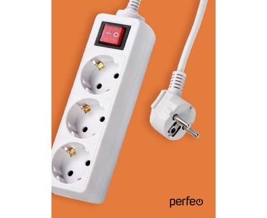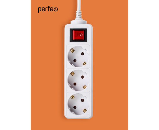 Сетевой удлинитель Perfeo с кнопкой "POWERMATE", 3,0м, 3 розетки, (PF-PM-3/3,0-W), белый