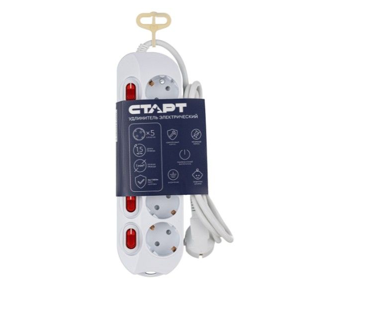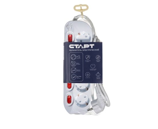Сетевой удлинитель СТАРТ 4680024810432 C/У S 5х1-ZDIV с заземлением и защитой от детей сечение провода 3х1мм2, длина провода 1,5м