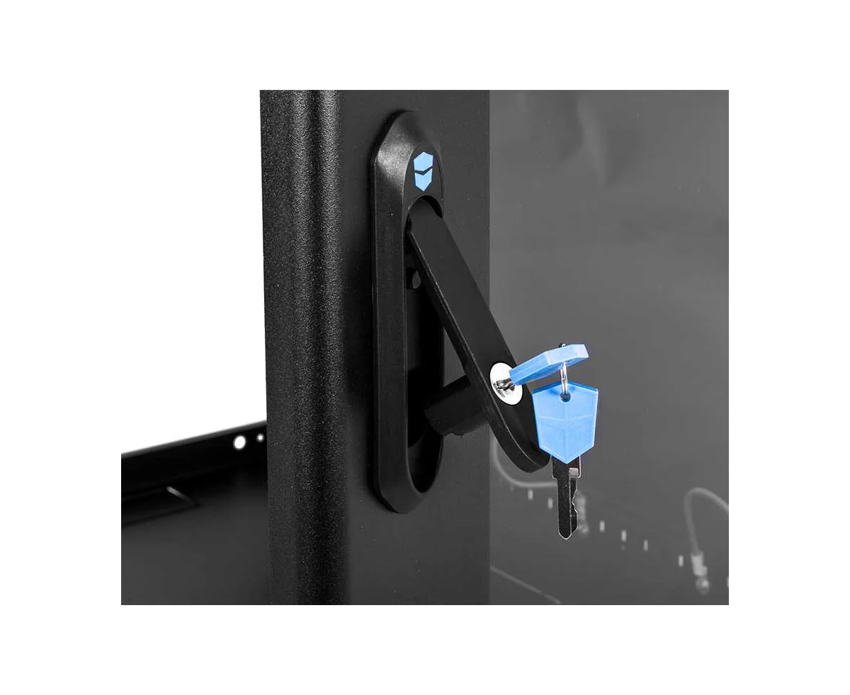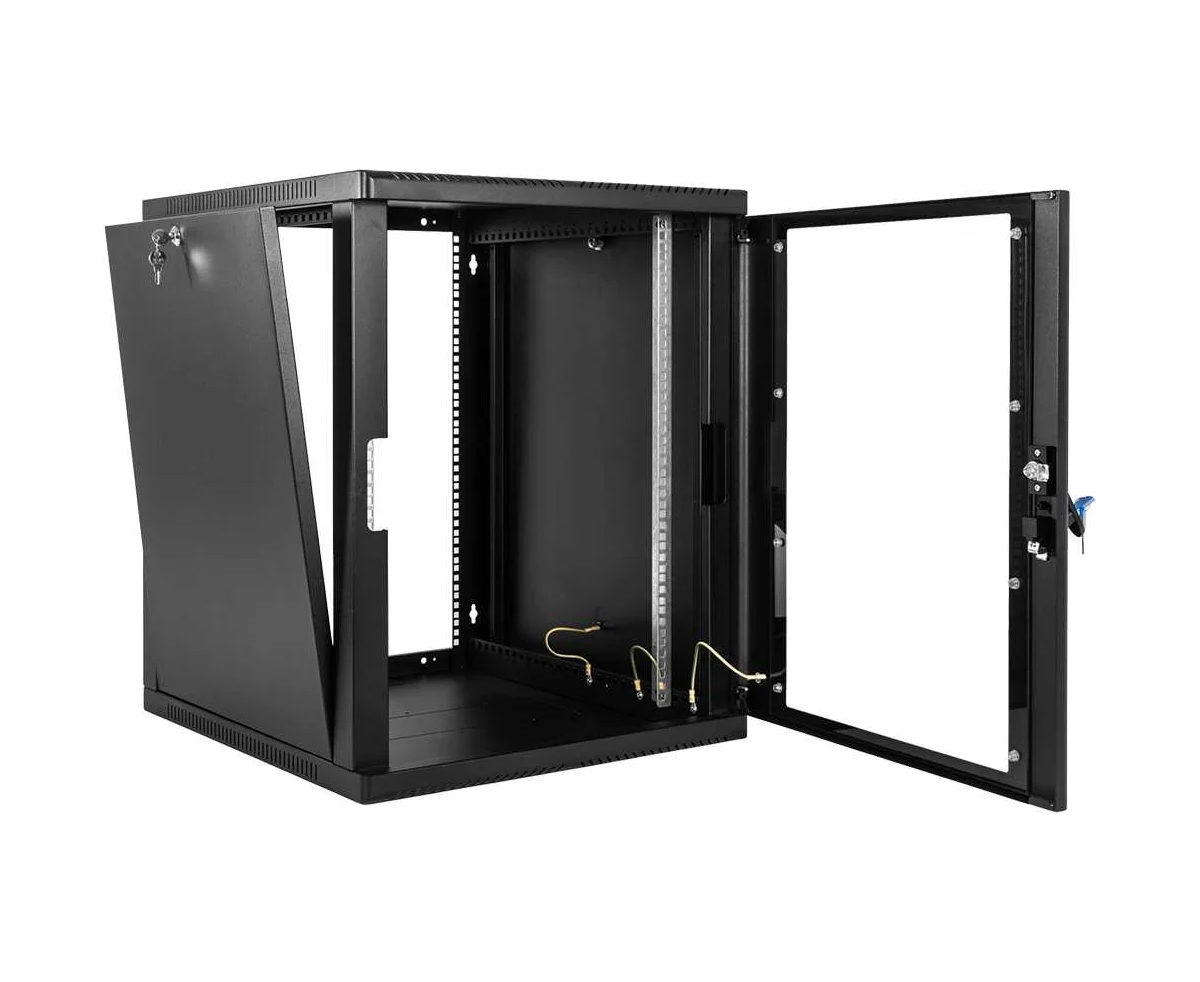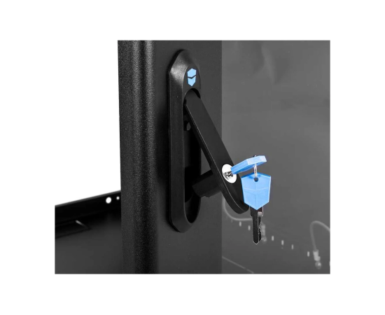 Настенный шкаф 19" ШРН имеет цельнометаллическую сварную конструкцию, он удобен для быстрой установки и монтажа оборудования, так как не требует сборки. Отсутствие острых углов с фронтальной стороны повышают безопасность при эксплуатации и обслуживании шкафов, что помогает исключить человеческие травмы при соприкосновении со шкафом. Комплектация дверью с тонированным ударопрочным стеклом. Новая конструкция стеклянной двери с механическим креплением стекла увеличивает её жесткость, и обеспечивает легкую замену стекла при его повреждении. Возможна установка двери, как с правой, так и с левой стороны. Новый усиленный точечный замок с поворотной ручкой увеличивает жесткость фиксации двери в закрытом положении и защиту от несанкционированного доступа, а также обеспечивает удобство при её открывании.