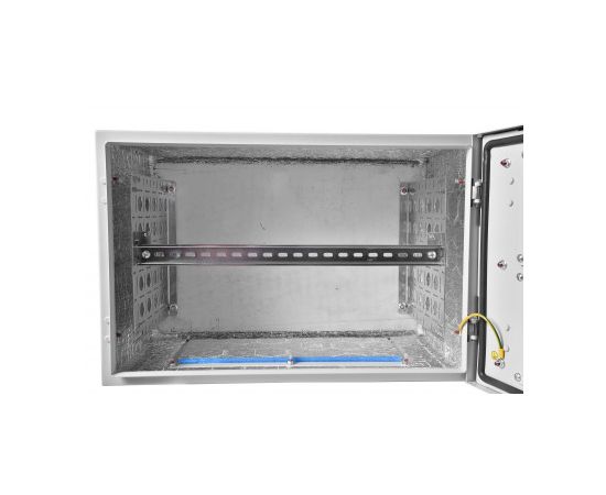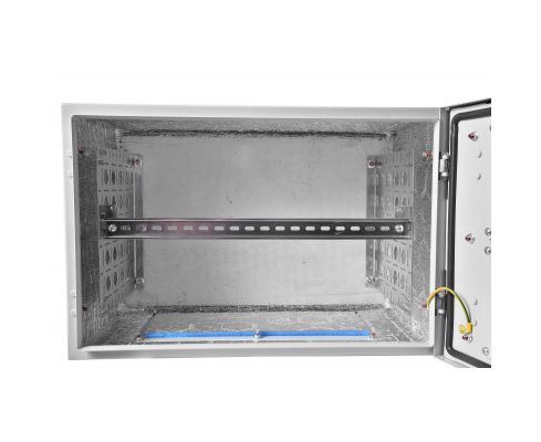 Всепогодный настенный шкаф имеет сварной металлический корпус, изнутри покрыт слоем термоизоляции. На дверь могут устанавливаться вентиляторы МВ-400-2 и фильтр МВ-Ф. Внутри имеется DIN-рейка для установки термостата, гигростата и других датчиков. Изделие комплектуется задней панелью и юнитовыми панелями 19''.
