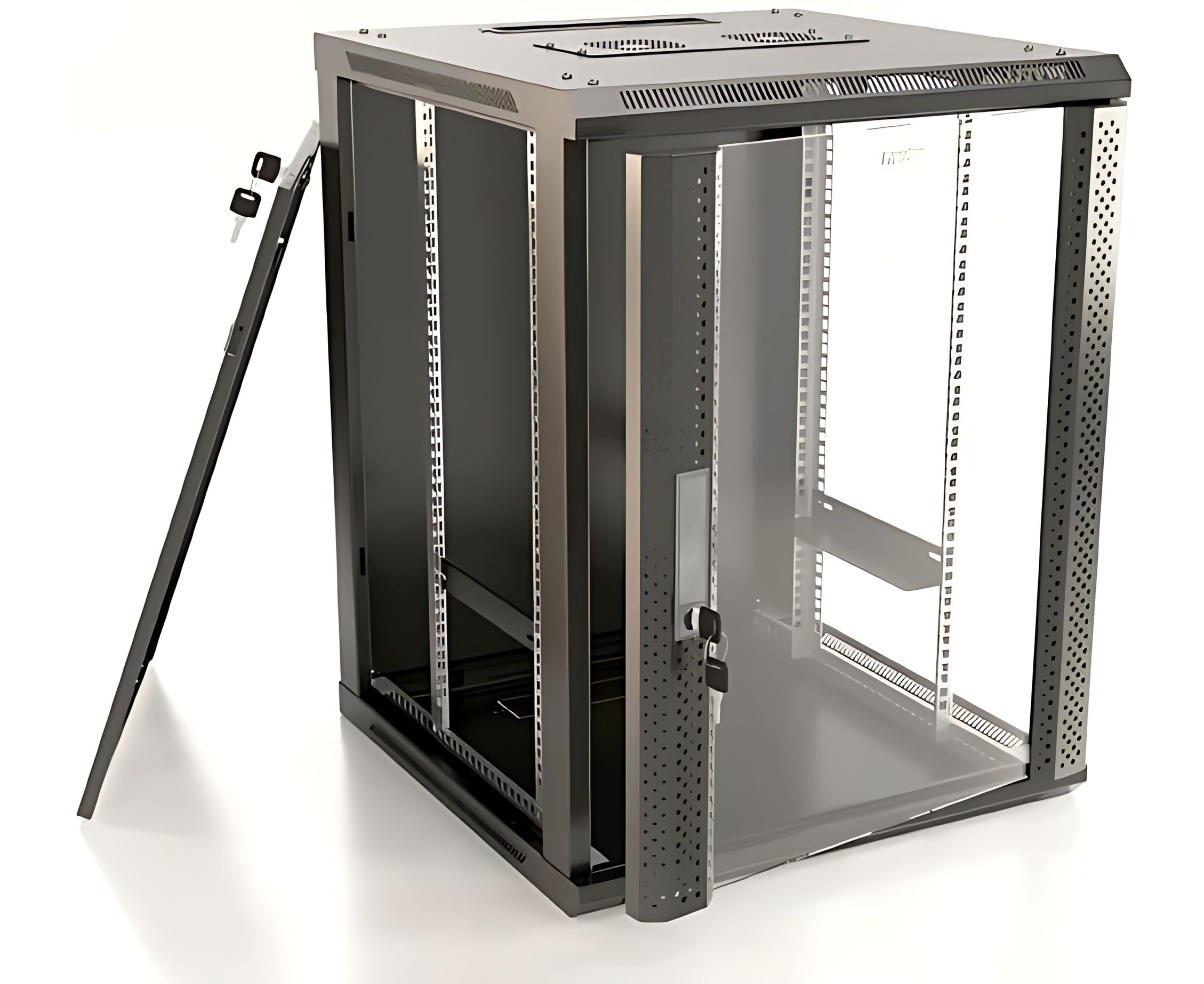 холоднокатаная сталь (SPCC), закаленное стекло толщиной 4,7 мм, толщина стальных компонентов: рама каркаса, нижняя панель, задняя панель, передняя дверь, боковые панели, верхняя панель - 1,2 мм; горизонтальный монтажный профиль - 1,5 мм; 19" монтажный профиль - 2,0 мм
