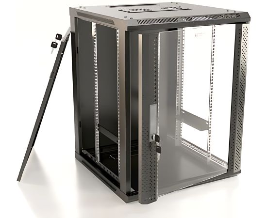 Шкаф коммутационный Hyperline (TWB-1266-GP-RAL9004) настенный 12U 600x600мм пер.дв.стекл 2 бок.пан. 60кг черный 650мм IP20 сталь