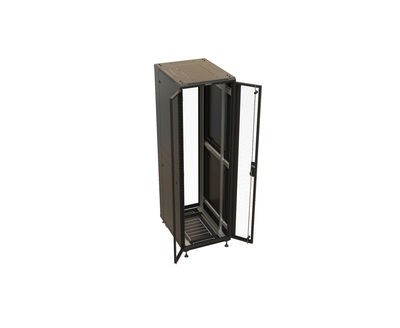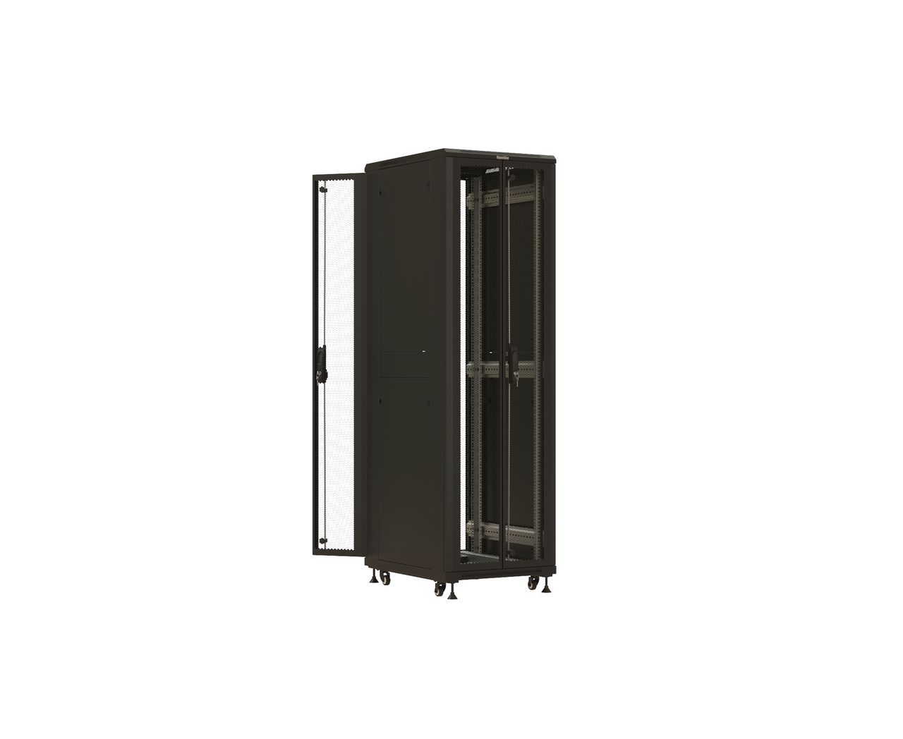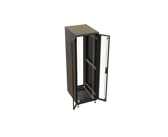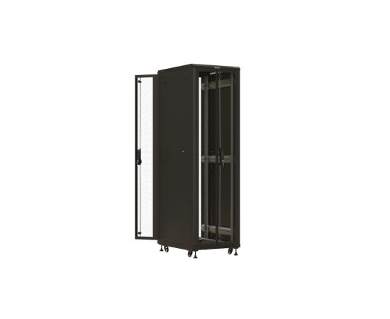 Шкаф серверный Hyperline TTBR-4261-DD-RAL9004 напольный 42U 600x1000мм пер.дв.перфор. задн.дв.перфор. 2 бок.пан. направл.под закл.гайки 800кг черный 9