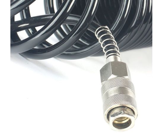 Описание: Спиральные шланги изготовлены из полиамидного материала в форме спирали; устойчивы к низким температурам; эластичны; оснащены быстросъёмными штуцерами.