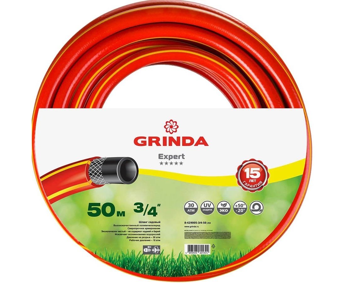 Шланг GRINDA Expert поливочный, 30 атм., армированный, 3-х слойный, 3/4"х50м (8-429005-3/4-50_z02)