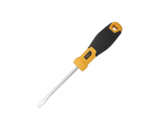 Шлицевая отвертка Deli DL6361001 6х100мм, материал: CR-V, двухкомпонентная ручка, хромированная