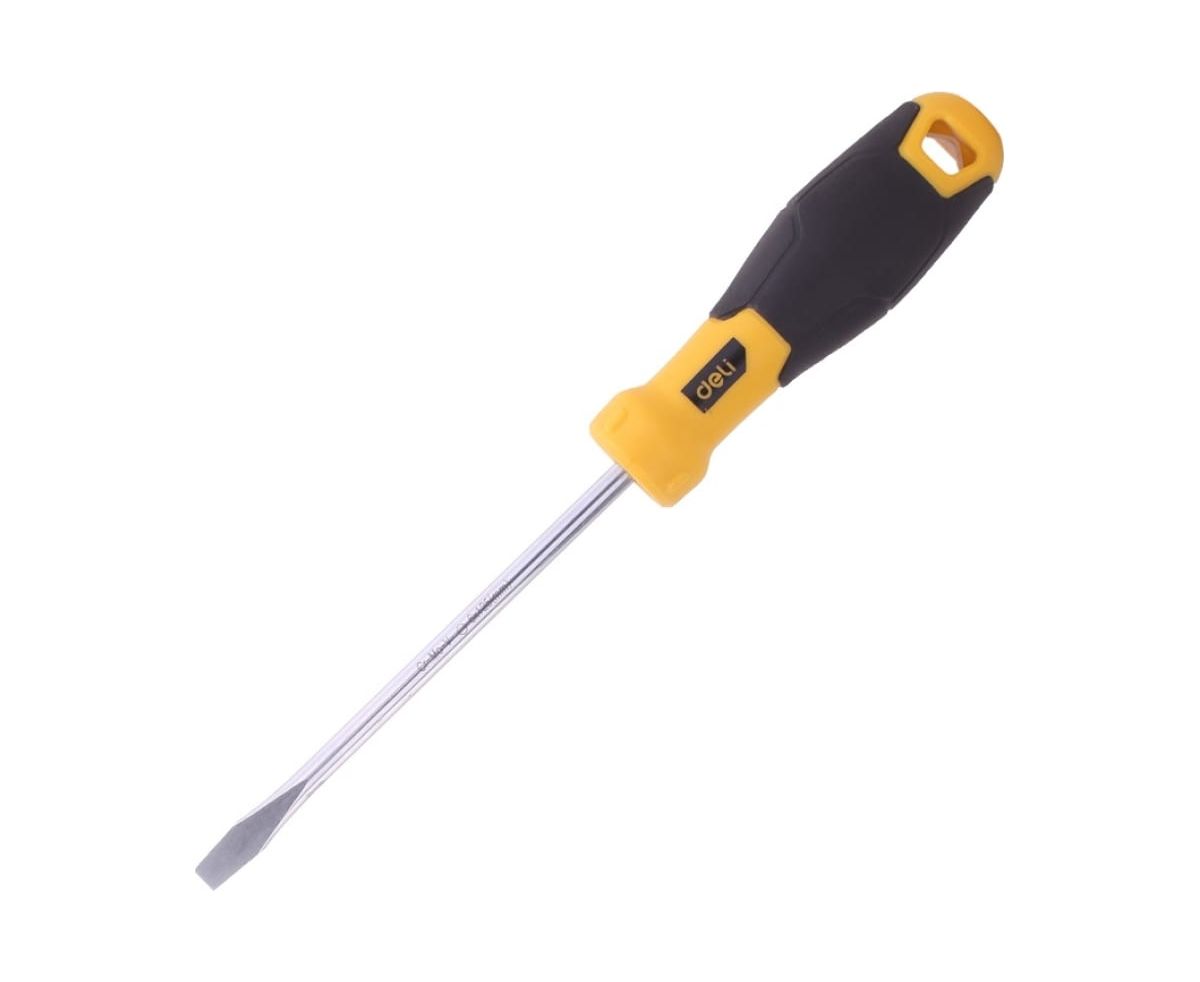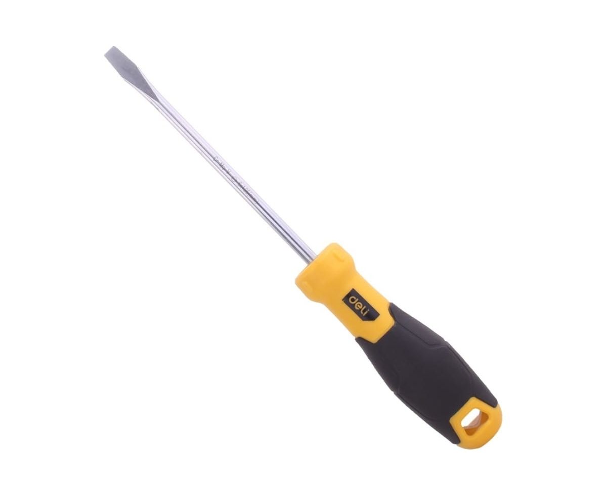 Шлицевая отвертка Deli DL6361501 6х150мм, материал: CR-V, двухкомпонентная ручка, хромированная