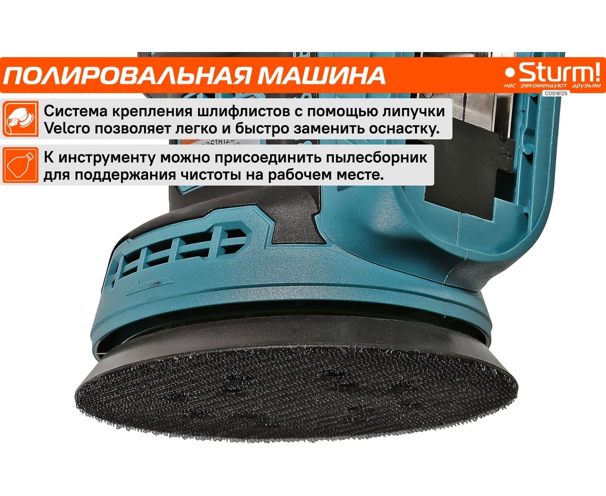 Шлифмашина аккум Sturm! COS18125 без АКБ и ЗУ