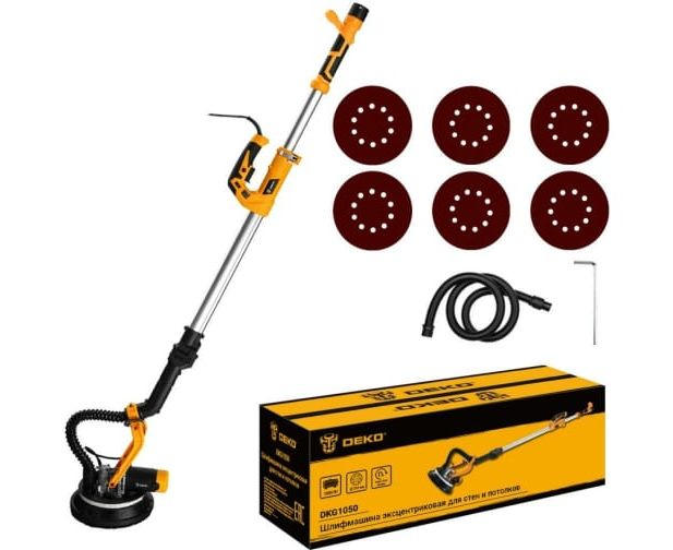 Эксцентриковая сетевая шлифмашина для стен и потолков DEKO DKG1050 1050 Вт 063-2208 – электроинструмент, применяемый для шлифовки и выравнивания поверхностей.