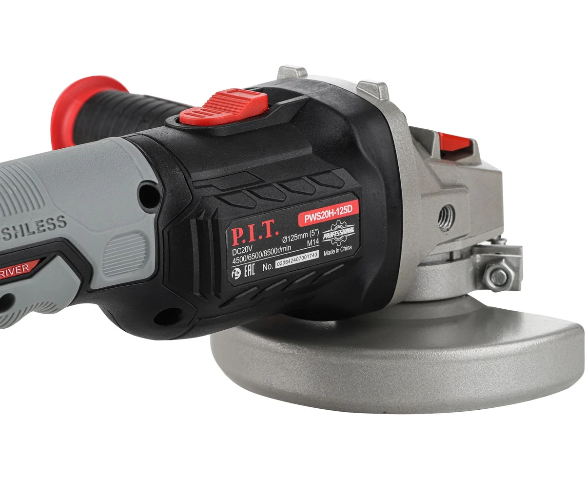 Шлифмашина угловая аккуммуляторная бесщёточная P.I.T. PWS20H-125D/1 (20В, 125мм, 3 ск, 1 акб 4,0Ач, ЗУ, кейс)