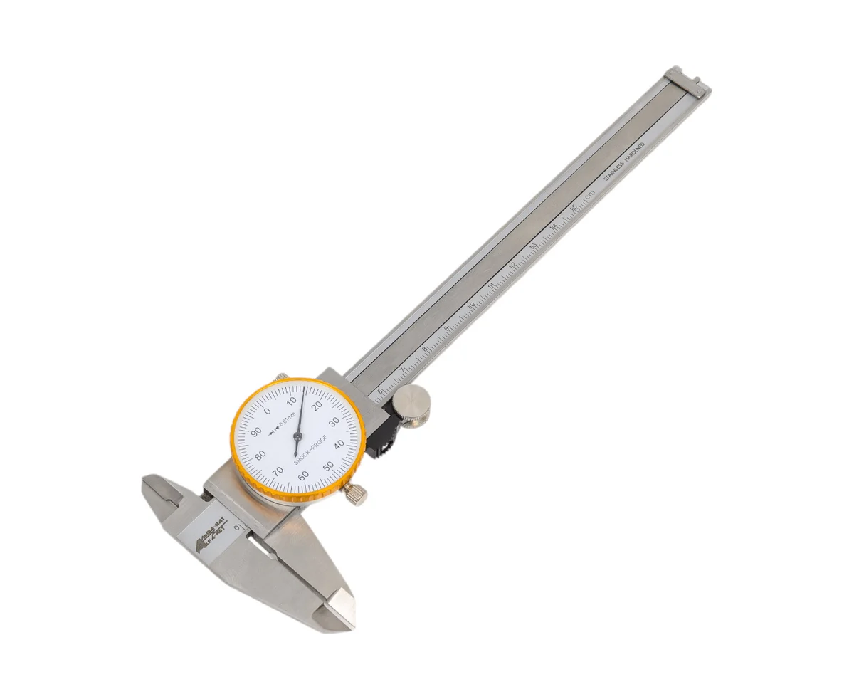 Штангенциркуль состоит из штанги с измерительной шкалой и подвижной рамки с отсчетным устройством стрелочного типа. Отсчетное устройство приводится в движение с помощью зубчатого механизма. Стрелка на циферблате отсчитывает доли миллиметра, т.е. показание штангенциркуля складывается из отсчета целых значений по шкале штанги и дробных по показаниям стрелочного индикатора штангенциркуля. Плавное перемещение рамки обеспечивается пружиной, расположенной внутри рамки. Тип штангенциркуля ШЦК-I отличается двусторонним расположением губок и специальным глубиномером, который используется для измерения глубины отверстий. Штангенциркуль имеет микровинтовое устройство для тонкой регулировки рамки, а также специальный винт для настройки нулевого положения отсчетного устройства. Фиксация рамки производится при помощи стопорного винта.