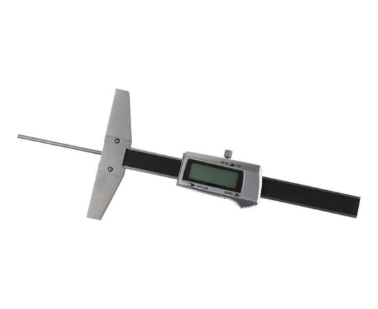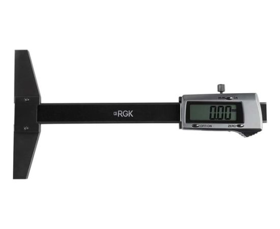 Электронный штангенглубиномер RGK SCG-100, в отличие от измерительных устройств подобного типа со штангой прямоугольного сечения, позволяет определять глубину не только пазов, выемок, канавок и т.п., но и малоразмерных глухих отверстий с заглублением до 100 мм. В данном инструменте роль выдвижной штанги выполняет тонкий стальной стержень цилиндрической формы с плоской опорной поверхностью. Широкое основание при минимальном люфте подвижной части дает возможность также оценивать перпендикулярность конструкционных элементов обрабатываемой детали.