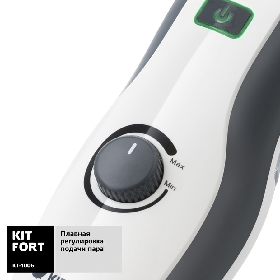 Принцип действия парогенератор Kitfort KT-1006 основан на воздействии горячего пара на загрязнения. Пар проникает внутрь загрязнения, размягчая и растворяя его, а затем с помощью тряпки или щетки частички грязи смываются. Высокая температура пара весьма способствует процессу очистки.