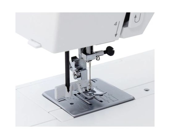 Комплектация набор игл, лапка для пришивания пуговиц, вспарыватель, лапка для потайной строчки, ножная педаль, лапка для вшивания молнии, документация, лапка для выметывания петли, универсальная лапка, лапка для атласных строчек, отвертка-ключ, карточка с подсказками, шпульки, полужесткий чехол