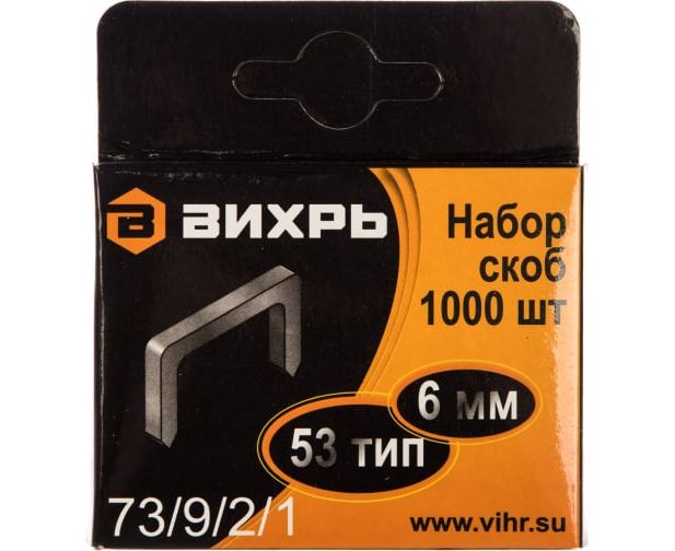Скобы для мебельного степлера Вихрь 6мм,тип скобы 53 1000 шт. (73/9/2/1)