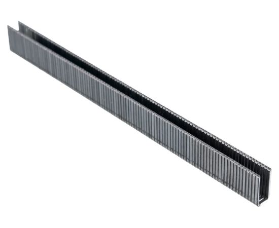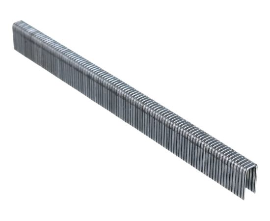 Скобы, 5000 шт. в упаковке, устанавливаются в пневматические степлеры, совместимые с крепежами типа 18GA сечением 1,25 х 1 мм, длиной 13 и шириной 5,7 мм. С их помощью можно закрепить на деревянной поверхности утеплитель, упаковочные материалы, ткань и гипсокартон.
