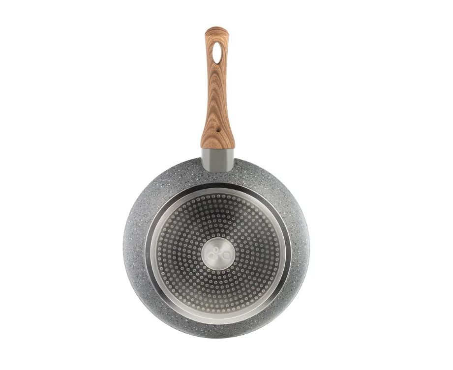 Функциональная линейка сковород LARA серии «Palermo» – это удивительное сочетание превосходного качества и внешней элегантности. Устойчивое к царапинам прочное внутреннее трехслойное и внешнее двухслойное антипригарное покрытие GRANIT с мраморной крошкой обеспечит длительную эксплуатацию. Для производства были подобраны экологически чистые материалы. Корпус выполнен из кованого алюминия и имеет отличные теплопроводные свойства. Эргономичная ручка с широким хватом выполнена из бакелита с покрытием Soft-Touch и отделкой под дерево. Толстое точечное индукционное дно подходит ко всем типам плит. Удобная петля для подвешивания.