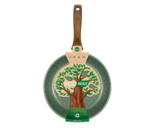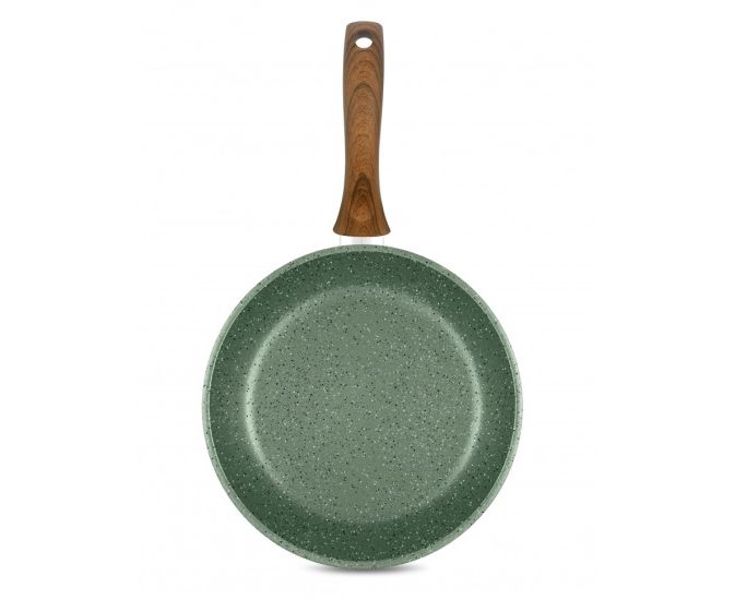 Сковорода выполнена в натуральном зеленом цвете и комплектуется эргономичной ручкой с имитацией дерева.