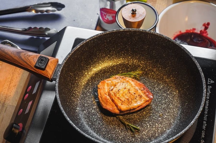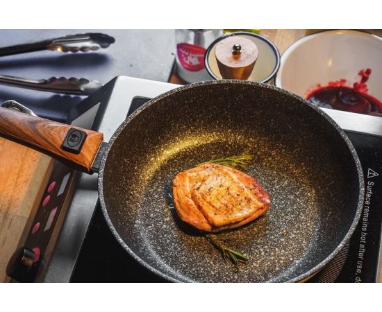 Сковорода «Kukmara» изготовлена из литого алюминия. Она идеально подходит для жарки мяса, запекания, тушения овощей, еда в такой посуде не пригорает. Толстостенная сковорода обеспечивает быстрое и равномерное распределение тепла по всей поверхности.