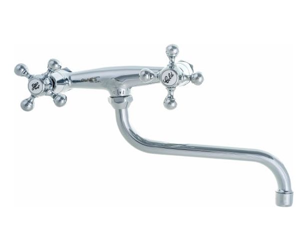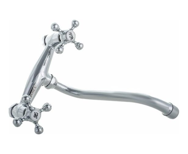 Настенный смеситель для кухни OLIVE'S 01410GR с удобными маховиками и поворотным изливом 20 см.